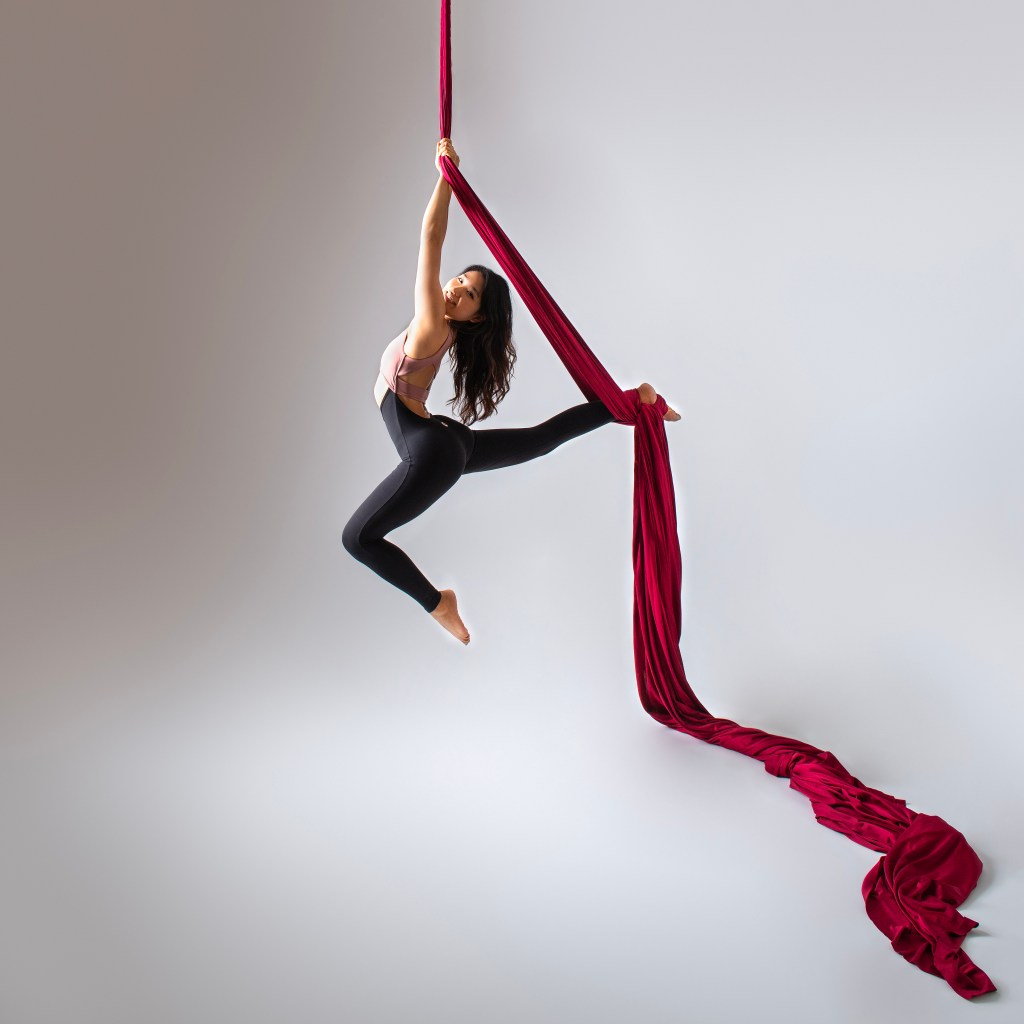 The slots are all 45 minutes, that gives us plenty of time to set up the shots, pose and even do a flow at the end. The record so far is 15 outfit changes, that is a lot, but you certainly have time for 2 or 3! We’ll start with some easy poses to warm up, and try any more challenging ones as we go. We normally keep the equimnet on slow spin to minimise the effort of getting into the poses. But all of this will be explained on the day.
